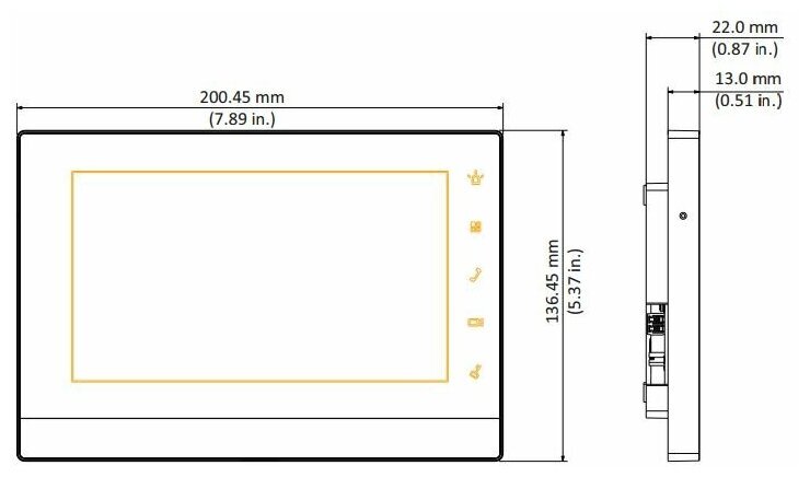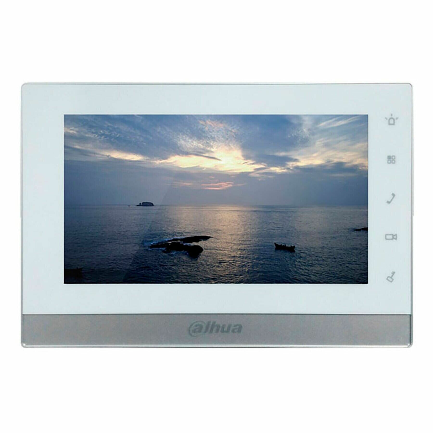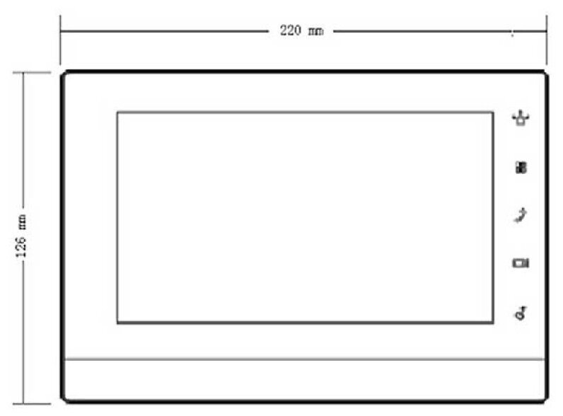 7-ми дюймовый IP монитор видеодомофона;800x480 разрешение, емкостный сенсорный экран; 5 сенсорных кнопок; тревожные входы / выходы 6/1; RS485; LAN; Поддержка SD карты до 32Gb; Подключение 32 IP видеокамер дополнительно; Питание: DC 12В; Габаритные размеры: 200mm x 126mm x 22mm;