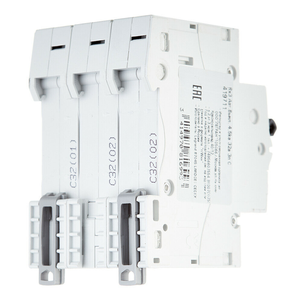 Автоматический модульный выключатель Legrand 3п C 32А 4.5кА RX3 Leg 419711