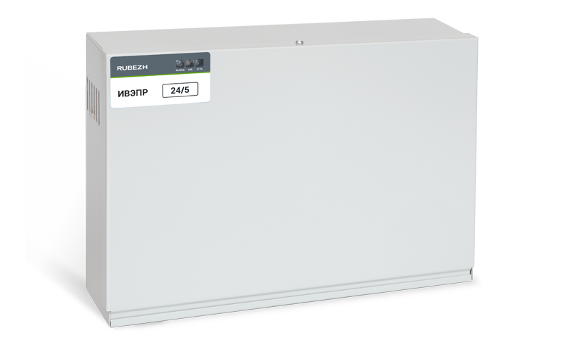 Источник питания ИВЭПР 24/5 выполнен в металлическом корпусе с возможностью установки двух 12-вольтовых АКБ (соединяемых последовательно). Отличается высокой надёжностью, широким диапазоном сетевого напряжения 150 В - 265 В, температурным диапазоном от -10 ºС до +50 ºС и пониженным уровнем высокочастотных помех.