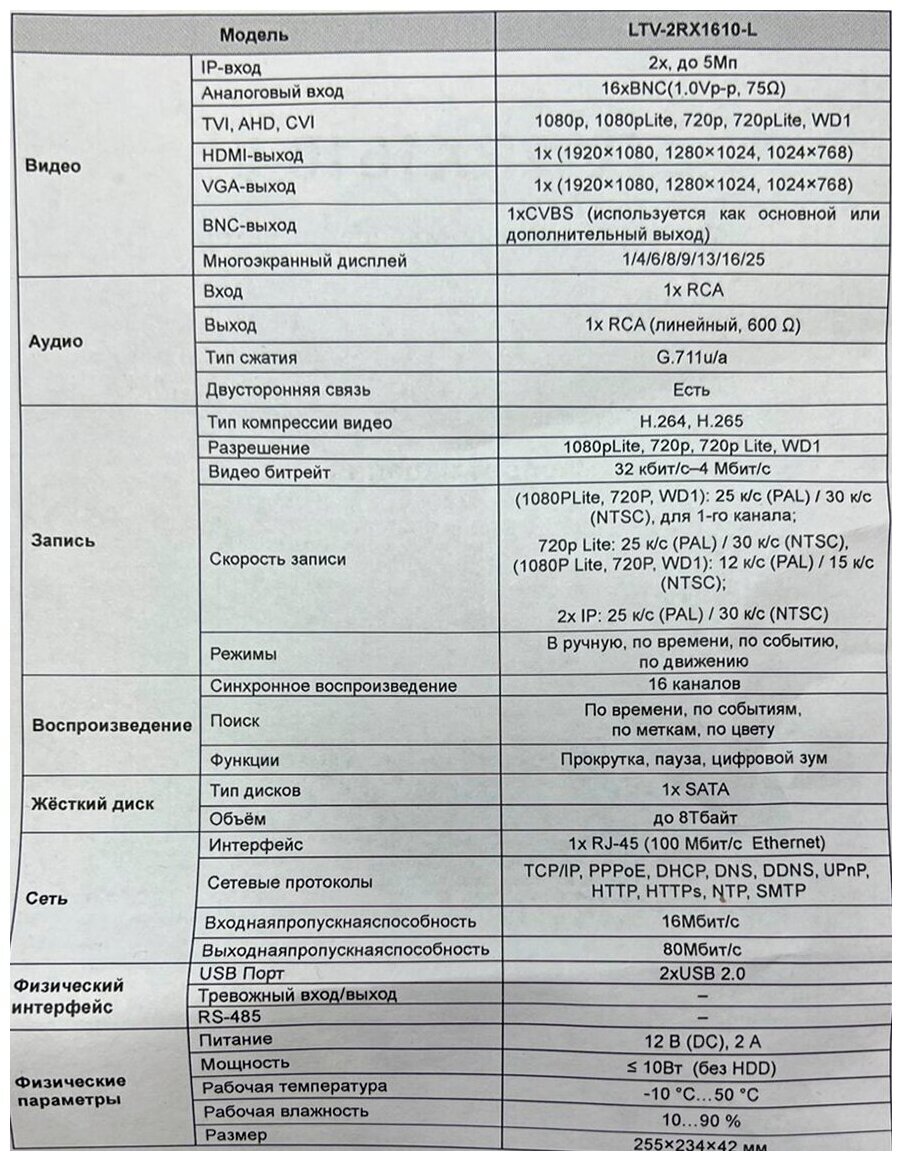 LTV-2RX1610-L Мультигибридный видеорегистратор
