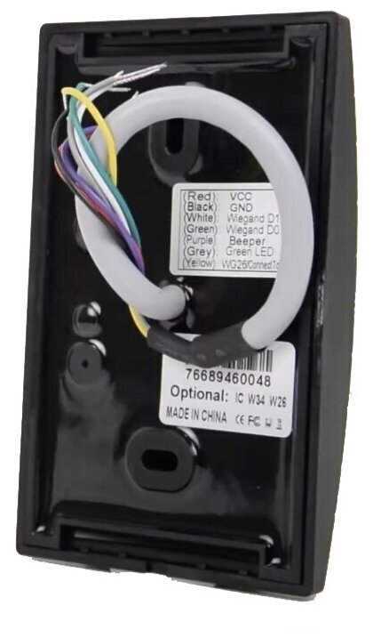 Идентификация RFID карта Рабочая частота 13.56 МГц Рабочая частота 13.56 МГц Расстояние считывания до 5 см Время считывания 300 мс Индикация Световая и звуковая. Интерфейсы связи Wiegand 34 Входной порт Внешний светодиод, внешний зуммер Питание Рабочее напряжение 6 ~ 14 В DC Потребляемый ток 70 мА Класс защиты IP65 Рабочая температура -10 С ~ +65 С Материал ABS и PC пластик Размеры 116 75 16 мм Степень защиты IP65