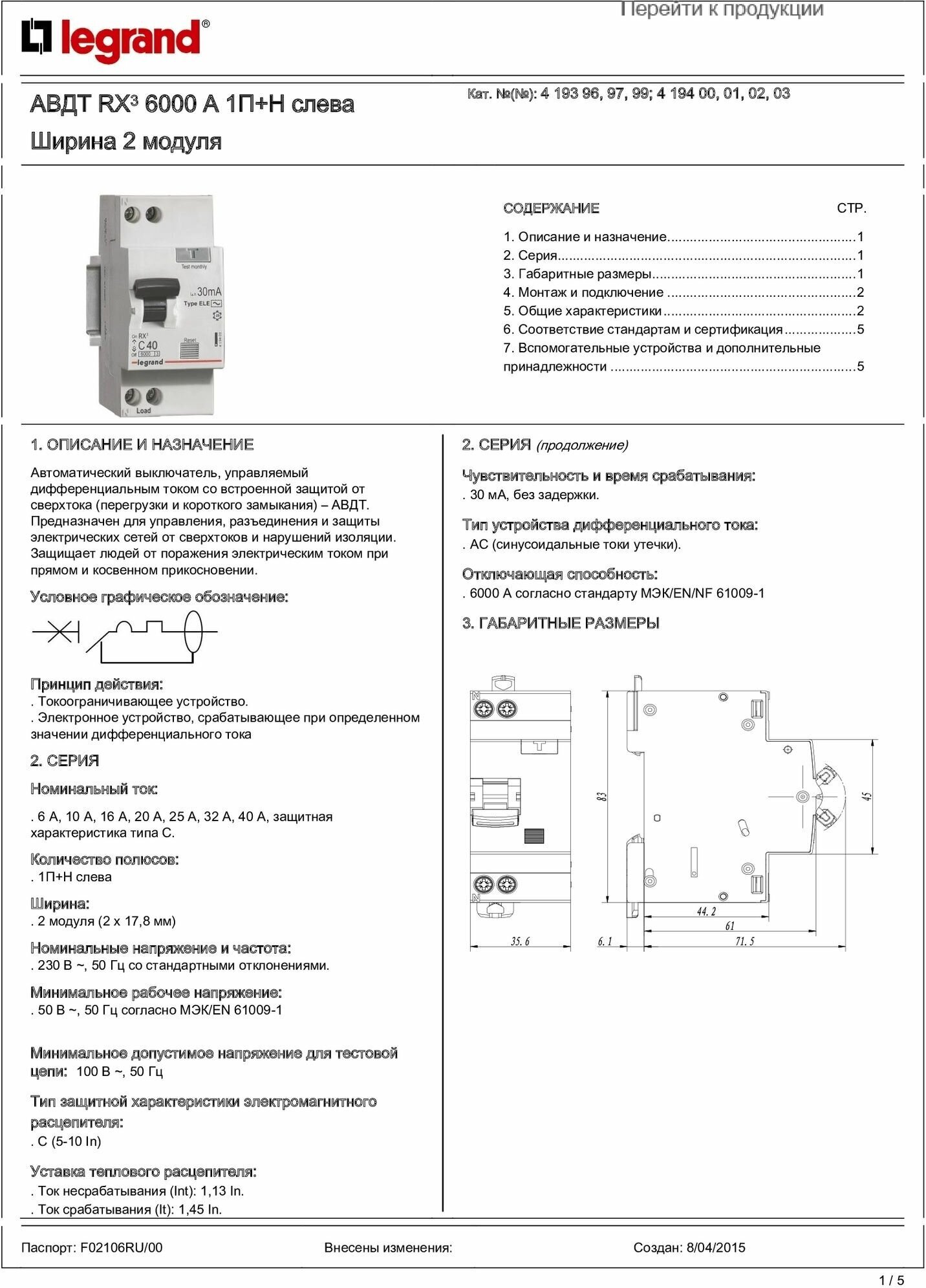 УЗО Выключатель дифференциального тока RX3 1P+Н 30мА 16А (AC) Legrand, 419399